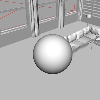 Decreasing the intensity of the light until it is within a normal range should be sufficient to see the effect of the HDRI. However, it can be difficult to tell if the texture map has been mapped correctly to the light. In order to better visualize the effect, we can create a reflective sphere and place it in front of the window. This way we can see the HDRI reflected in the sphere.