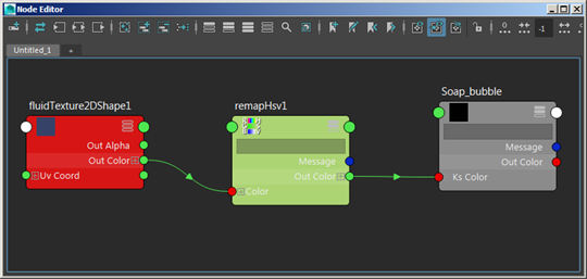 This tutorial shows how to shade the swirling rainbow color effect on a soap bubble. It can be achieved using a fluidTexture2DShape. This scene file consists of a fluidTexture2DShape that is connected to standard surface specular color.