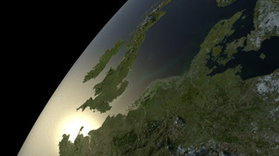 The Earth's surface is looking a little bit flat. We can add some elevation to the surface using the displacement map - 'Earth Elevation'.