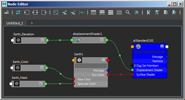 Create a file texture and connect it to the Shading Group's Displacement attribute of the Earth's Standard shader. Open the texture Earth Elevation. To see fine detail in the displacement we will need to add some subdivisions to the Earth geometry.