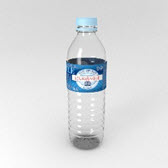 The transmission ray depth has been increased to 7 to allow enough rays to pass through both the plastic bottle and the liquid surface. The scene is lit with an area quad light with its light shape set to cylinder. There is also a sky in the scene.
