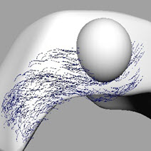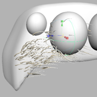 - Select the furbunny Paint Effects stroke and select Paint Effects>Create Modifier. Scale the modifier so that it is the same size as the eyeball and position it in the same place. Increase the Force value. The example below uses a value of two.