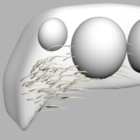 - Select the end curves and select Create Deformers>Lattice. With the lattice selected, go into component mode (F8), select the end cv's of the lattice and move them back so that they don't overlay the center of the head. Additionally, you can use this lattice to shape the curves even further.