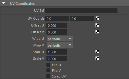 The image node is a color shader that performs texture mapping using a specified image file. You can control the position, size, and rotation of this frame on the surface. You can control how the texture is tiled within the frame using the scale UV, flip, wrap, and swap attributes.