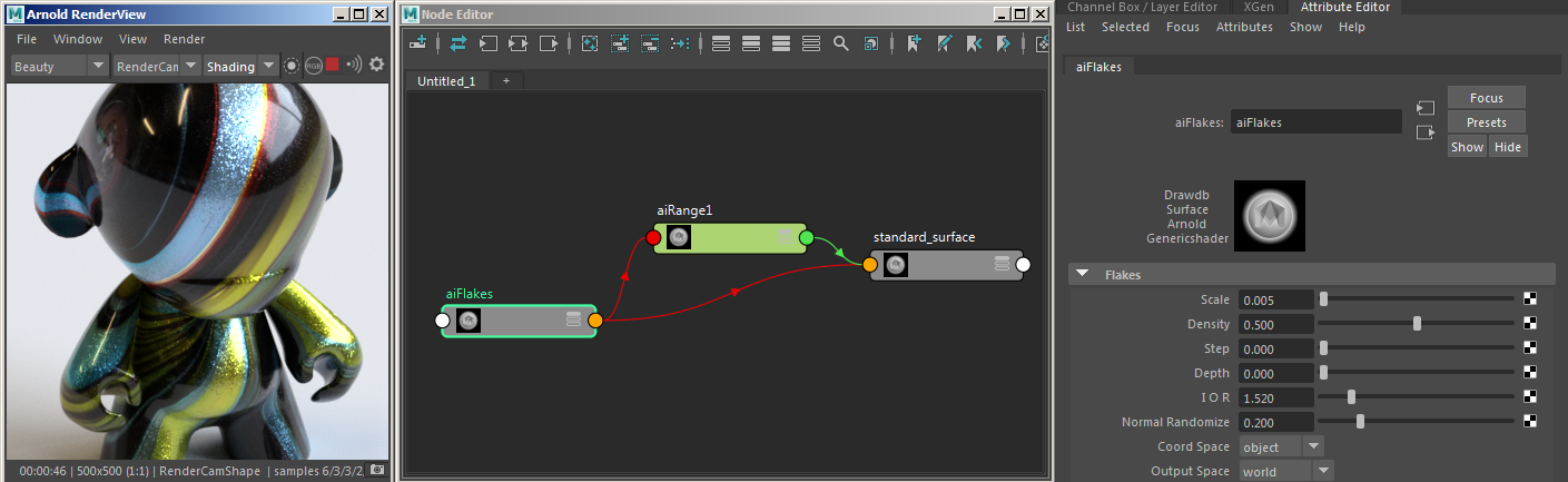 See Flakes in the Arnold User Guide for the full shader documentation. |