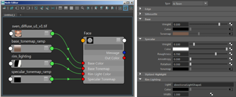 - Create a ramp similar to the one below and connect it to the base tonemap of the toon shader assigned to Sven's face.