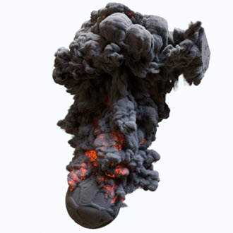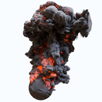 We can use a Volume Sample Float shader to control the appearance of our fire volume effect. This shader will remap the values of the 3D voxel grid in the same manner as tone-mapping and remapping filters to an image in Photoshop, which operates in a 2D grid.