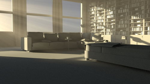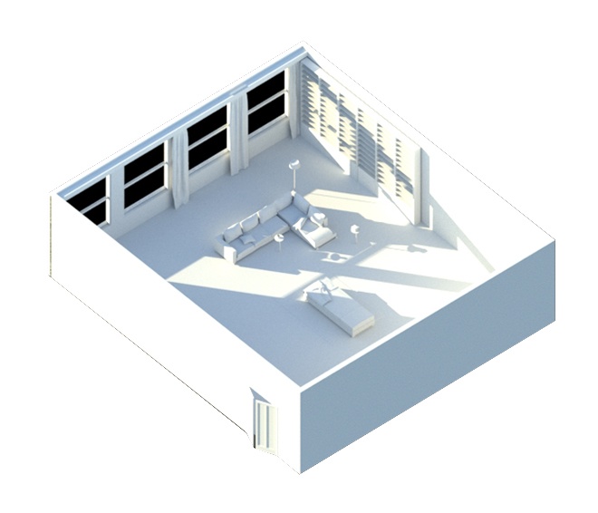 - IPR render the scene and adjust the Elevation and Azimuth settings so that the sun is shining through the window and hitting the far right wall and floor. In this case, the Elevation is quite low 15, and the Azimuth has been angled so that the sun light hits the far wall 143.