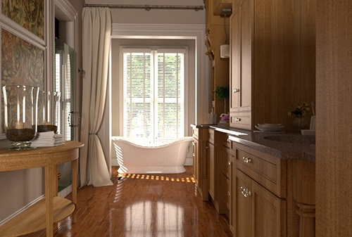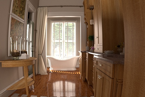 A 'barrel distortion' camera lens effect has been reproduced in the interior scene below, by simply increasing the radial_distortion to 0.2.