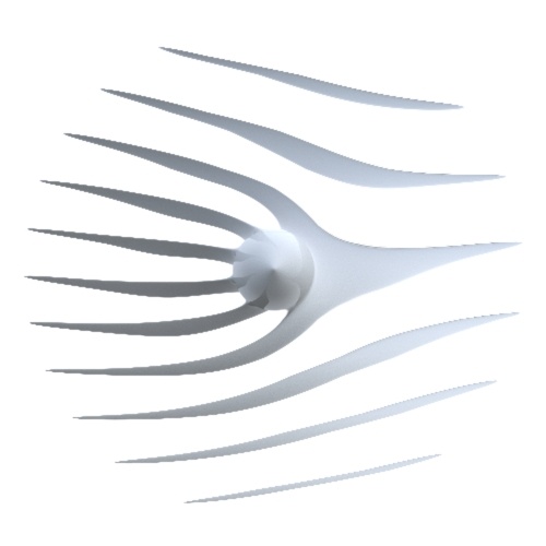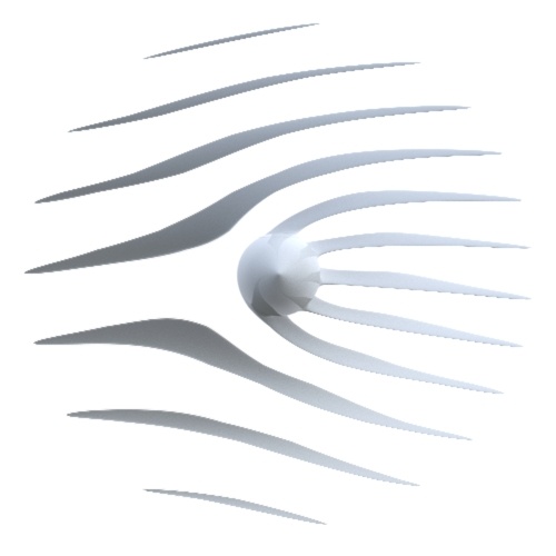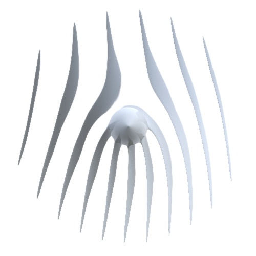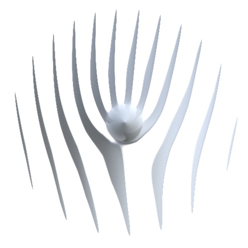 This is a spherical camera which means that the camera lens has a spherical appearance. A common use of this camera projection is to allow the creation of environment maps (in spherical map format) for later use as reflection maps or for environment lighting. To get the full spherical range, the camera's screen window must be set to [-1,-1] to [1,1]. Note that the same mapping could be achieved in the cylindrical camera with careful setting of the Horizontal FOV, Vertical FOV, and Projective parameters but the spherical camera is provided for convenience.
