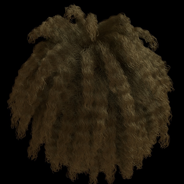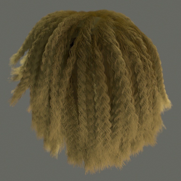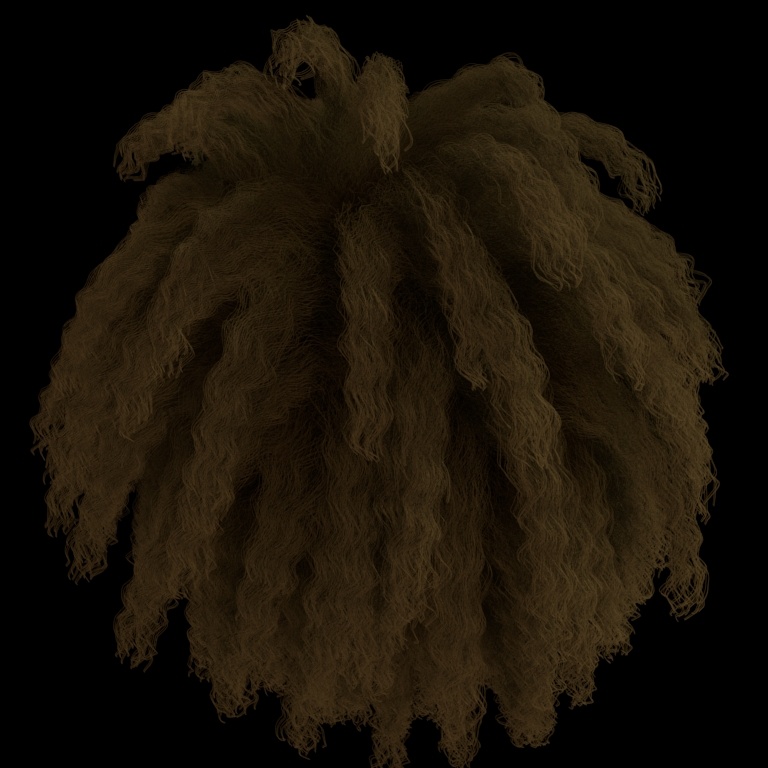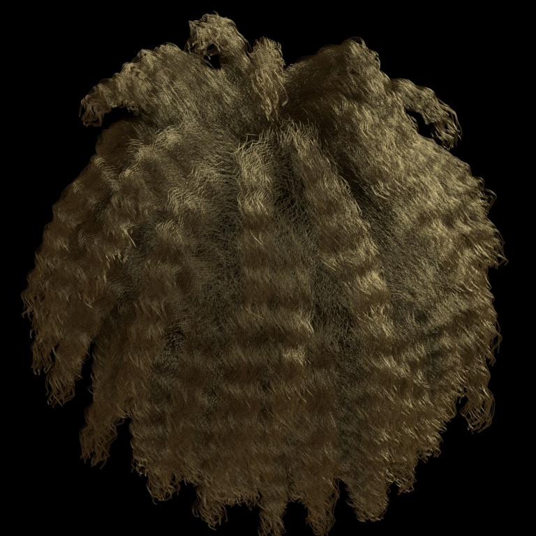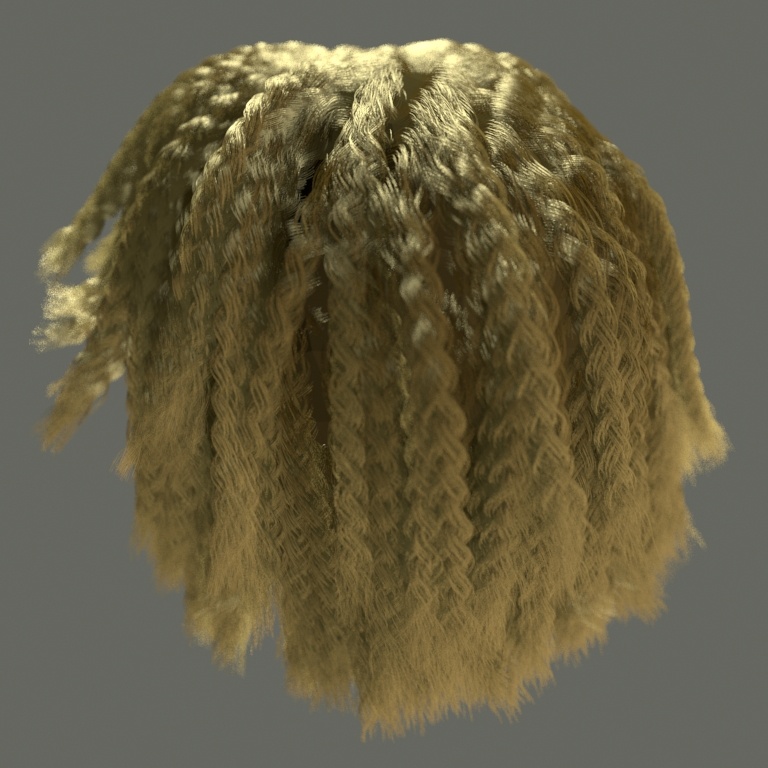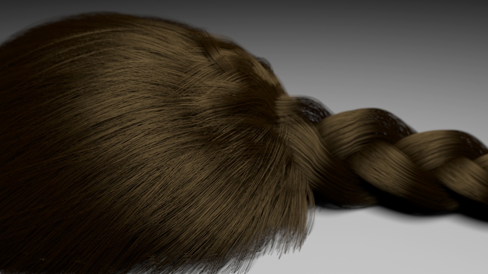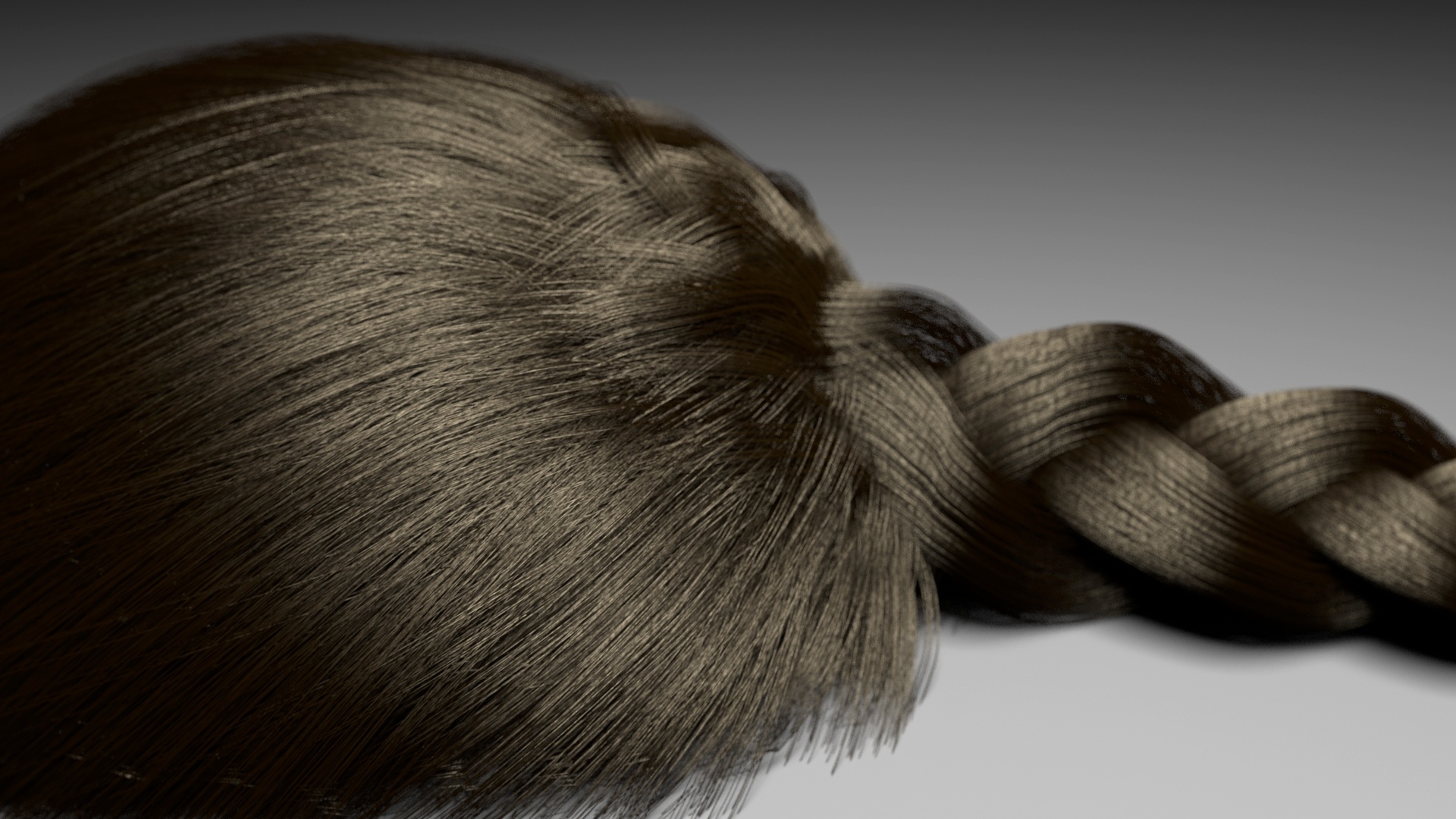 The Hair shader has a secondary glossy specular lobe with its own Scale, Color, Glossiness and Shift controls. The secondary specular tends to shift towards the root of the hair, which is achieved with a positive value in the Shift control. Even though in real hair the secondary shift is linked to the primary shift with the expression secondary shift = primary shift \ -1.5*, the specular shift controls are decoupled for greater artistic control.