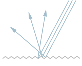 The 'microscopic' features of a surface affect the diffusion and reflection of light. This 'microsurface' detail has the most noticeable effect on specular reflections. In the diagram below, you can view parallel lines of incoming light commence to diverge when reflected from rougher surfaces, when each ray hits a part of the surface with a different orientation. In summary, the rougher the surface becomes, the more the reflected light will diverge or appear 'blurred'.