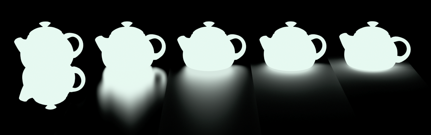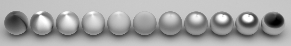 The brightness of the Specular highlight is automatically linked to its size due to the Standard shader's energy conserving nature. In the example below, all of the materials are reflecting the same amount of light, but the rougher surface is spreading it out in multiple directions. However, with low amounts of roughness the surface is reflecting a more concentrated amount of light.