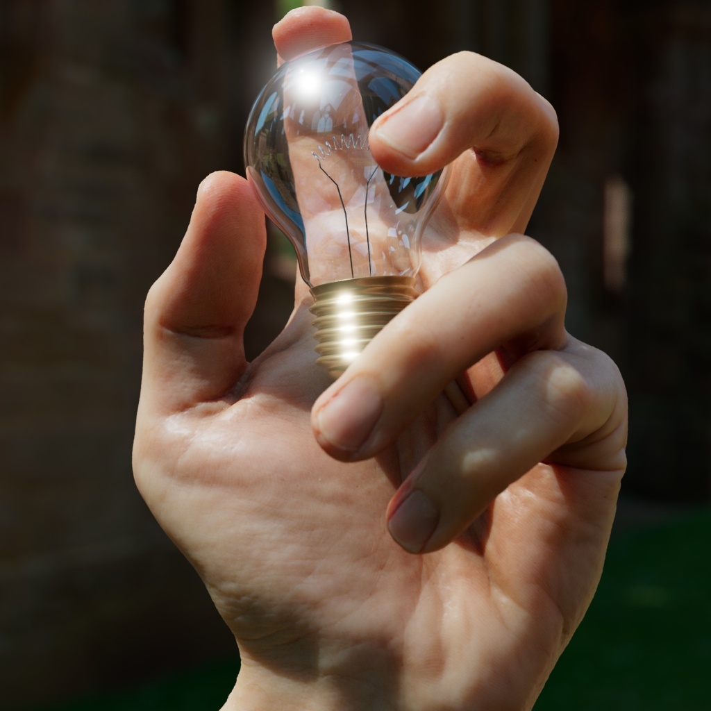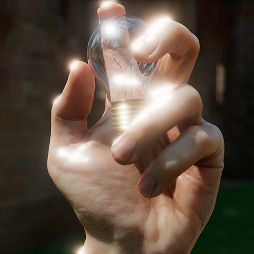 Default (0.9) applies bloom to hand and bulb. Higher threshold values show bloom on just the brightest specular highlight of the bulb.