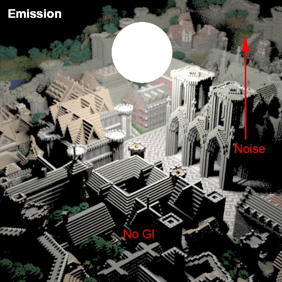 Emission, diffuse samples = 2, Time = 0:08.44 | Emission, diffuse samples = 16, Time = 5:36.86 | Mesh light, diffuse samples = 2, Time = 0:09.24 |
