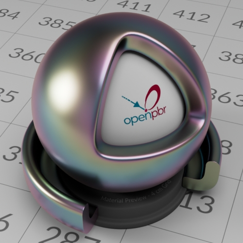 Thin Film reproduces the effect of iridescence iridescence i.e. brightly colored fringes, due to wave interference within in a layer of dielectric on the surface, of thickness comparable to the wavelength of light. It can be used for materials such as a soap bubble, burnt chrome or the reflective coating on a beetle.