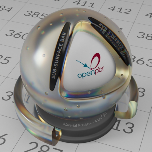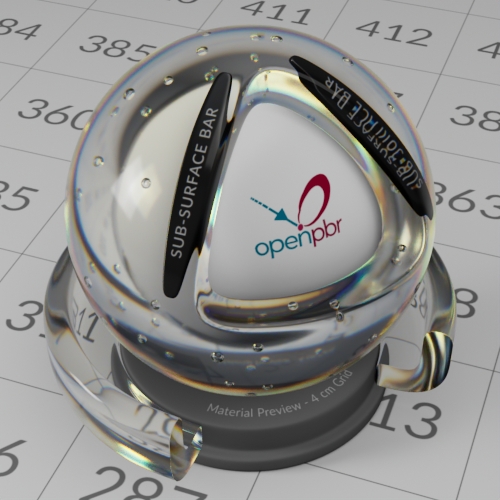 The interior of the base dielectric can be specified with or without an absorbing and scattering volume. This is useful for modeling materials ranging from clear or colored absorbing-only glass and liquids to translucent materials with visually significant scattering such as honey, fruit juice, murky water, opalescent glass, or milky glass.