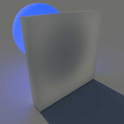 diffuse ray depth: 1 (default) | diffuse ray depth: 2. Blue emission is visible. |