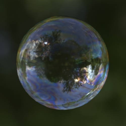Thin film reproduces the effect of thin film interference on a surface. It can be used for materials, such as multitone car paint, burnt chrome or the reflective coating on a beetle (Thin Film Thickness: 400, Thin Film IOR: 1.43).