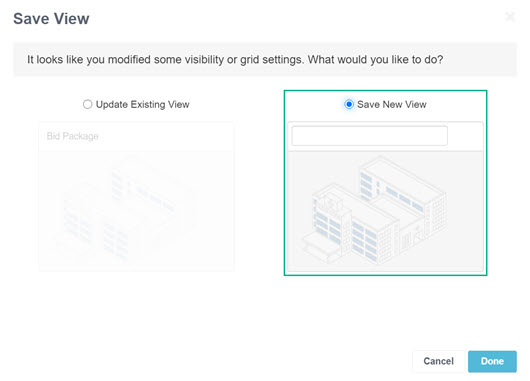 Select Done. The new view name appears in the project name box.