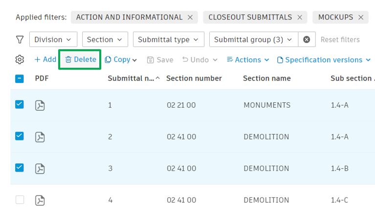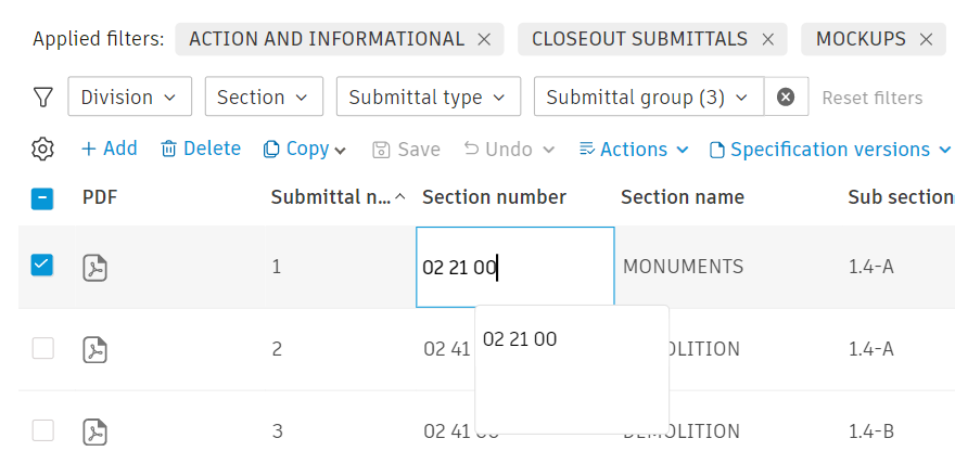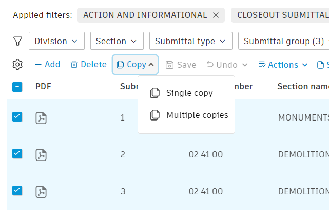 Add, Edit, Delete, and Copy Submittals with Smart Register