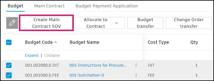 Note: If you have an active budget payment application, every change made on the attached main contract SOVs is visible on that application.