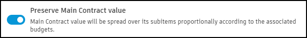 After adding the subitems, you may want to toggle the Preserve the Main Contract value option. See the Spread Markup Budget Value in Main Contract SOV section to learn more.