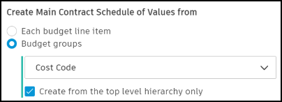 Tip: You can also create from the top-level hierarchy only. The owner can review the budget faster when only the top level of the hierarchy is used for the main contract.