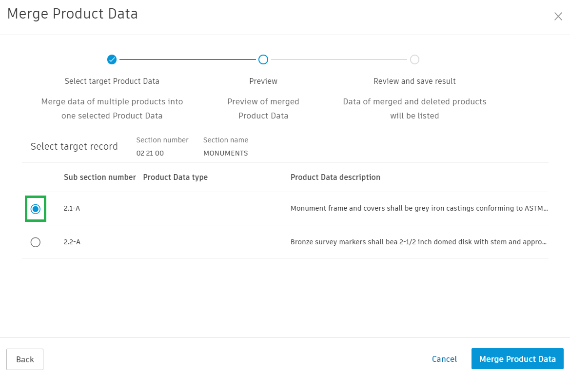 Use the merge function to combine multiple items from the Product Data table into a single item.
