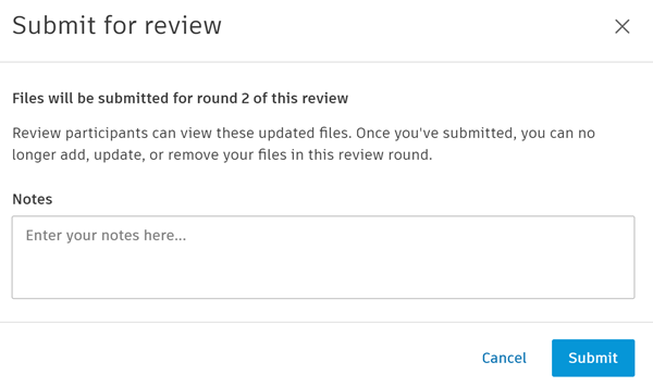 Review participants can view these updated files. Once you've submitted, you can no longer add, update, or remove your files in this review round.