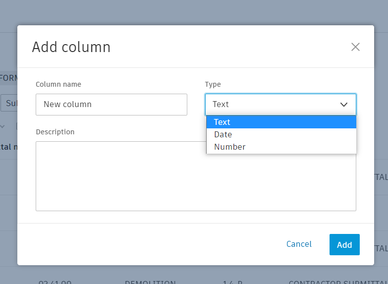 - Enter a Type (text, date, or number).