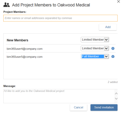 - In the Add Project Members dialog, you can add one or multiple members to a project at the same time.
