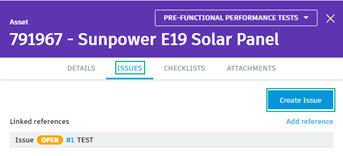 To create an issue directly from an asset, first select the asset from your asset administration page. Select the “Issues” tab and click “Create Issue.”