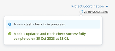 The clash check on your latest models is still processing | Clash checks can take from between a few minutes to a few hours, depending on the coordination space version you are using and the amount of model content being checked for clashes. ![]() |