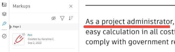 You can add markups to a PDF document. It may be helpful, for example, during the approval workflow review process.