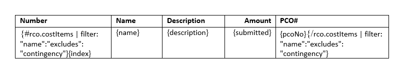 In situations where administrators don't want to make contingency cost visible in the generated document, filters can be used: