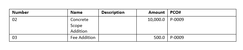 Example 2: Calculate the total of each PCO's all cost items' approved values.