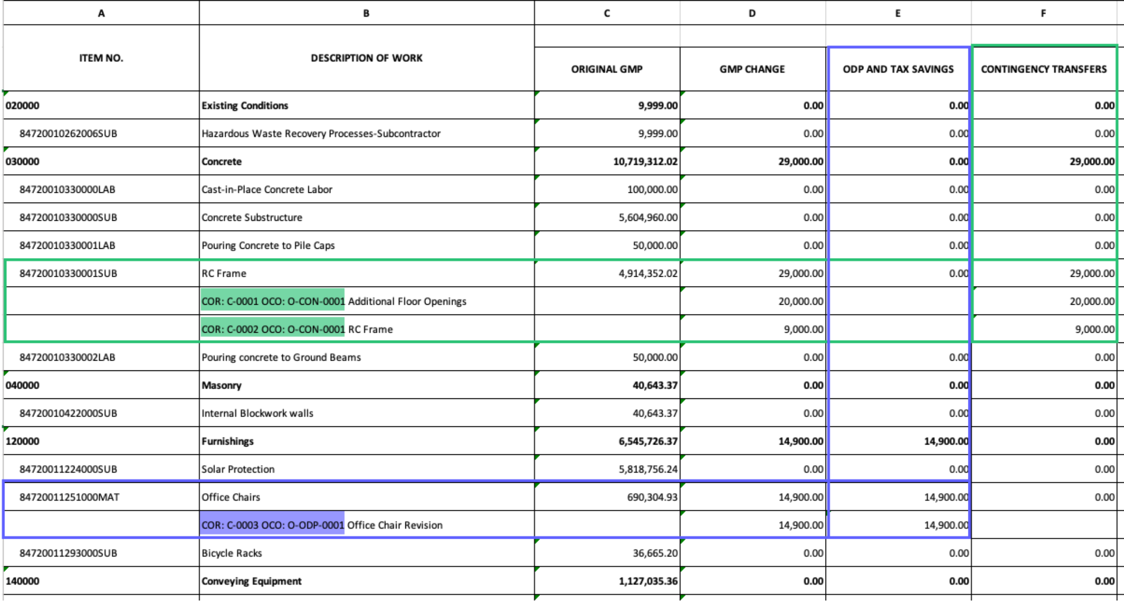Members can also separate original Schedule of Values with all approved SCOs into two separate worksheets.