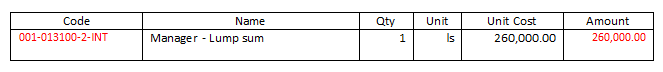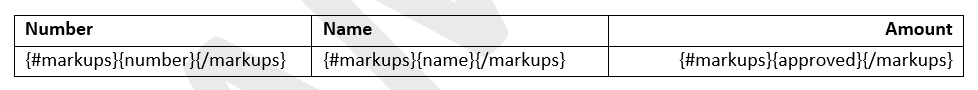 Only one line of a table needs to be filled out in the document template. The software builds the table with the specified information based on the data in Cost Management.