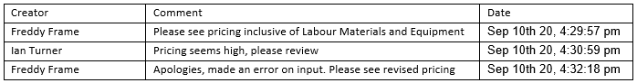 Scenario: You want to create a document containing the comments added throughout the lifetime of a change order.