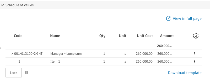 For example, when the Schedule of Values for the contract looks like this: