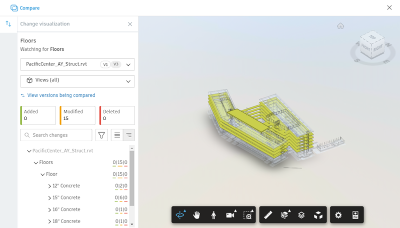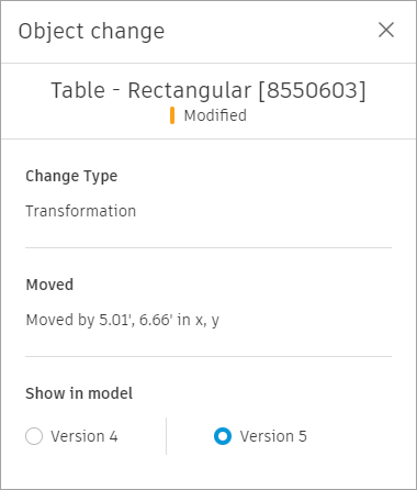 - At the bottom of the panel, use the buttons to toggle between the selected versions, and visualize the change in the model.
