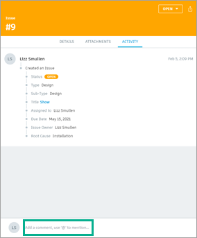 Click the Activity tab to view the issue activity log.