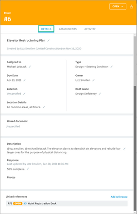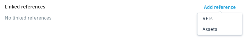 Members with create permissions or above can add references to existing RFIs and Assets from existing issues. Project administrators and RFI managers can also create new RFIs and reference them directly from existing issues.