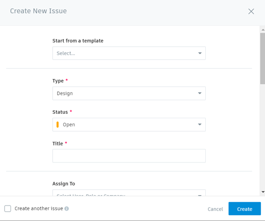 Tip: You can select a template to use predefined settings for your new issue.Specify the issue type.