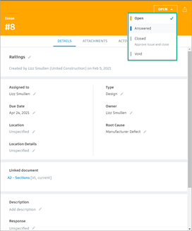To learn more about the issue workflow and issue statuses, see Issues.