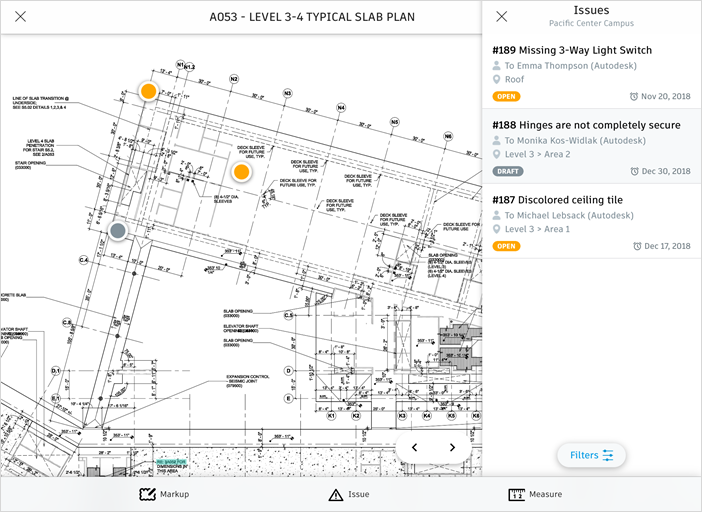 - To filter the issues by type, status, location, assignee, due date, or root cause, tap Filters