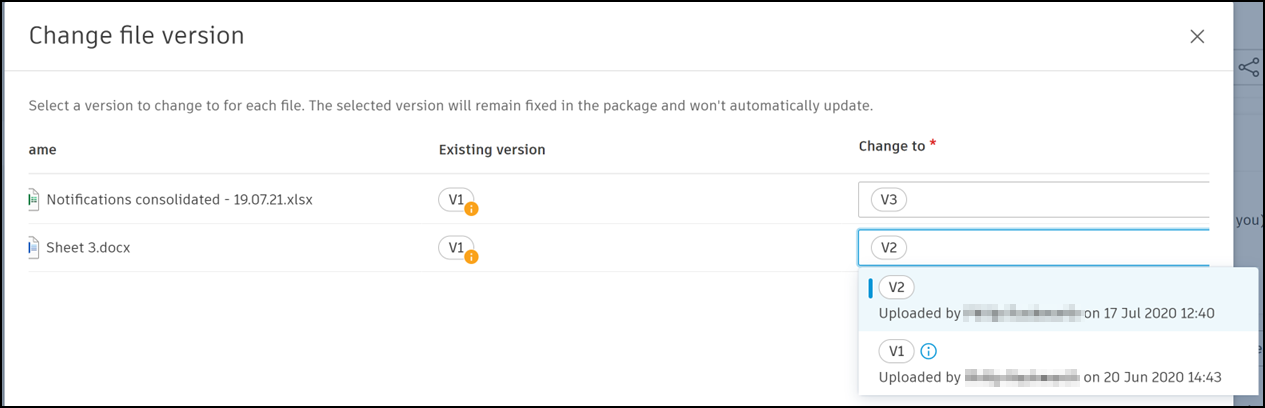 Project administrators and package managers can change the file versions in an unlocked fixed version package. They can't change the file versions in a current versions package as they only show the latest current versions.