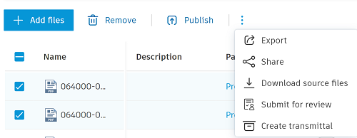 - Follow the Create a Transmittal from the Files Tool workflow from step 4 to create a transmittal.