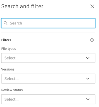 - Review status: Filter by one or more review statuses: (Empty), In review, Approved, Rejected.